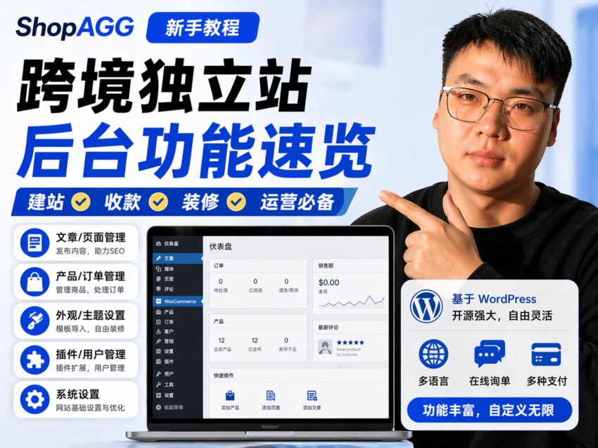 本篇内容整理自视频教程,带你快速了解通过 ShopAGG 搭建好的独立站后台各项功能,以及后续如何进行网站内容修改与管理。