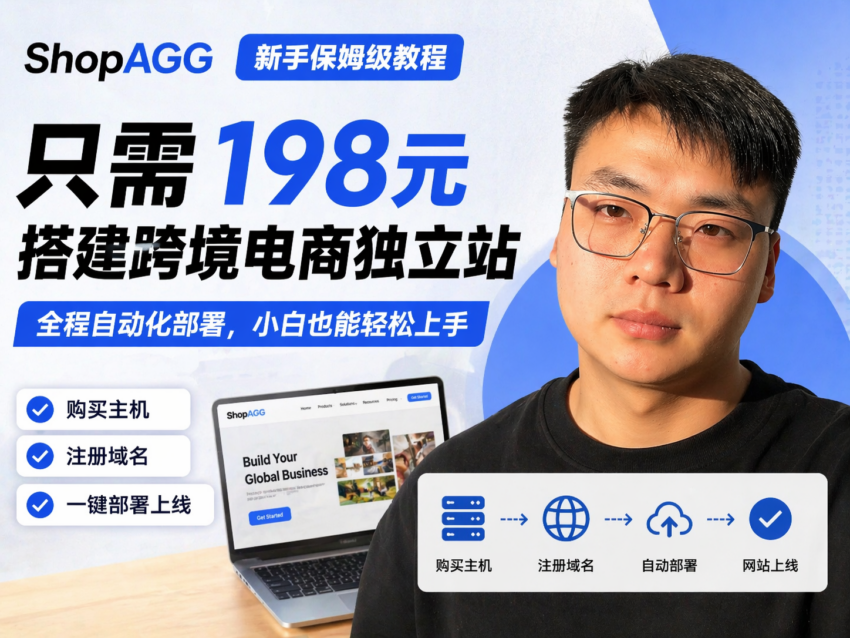 本篇内容整理自视频教程,详细演示如何通过 ShopAGG 从0开始搭建一个跨境电商独立站,全程自动化部署,无需任何技术基础。